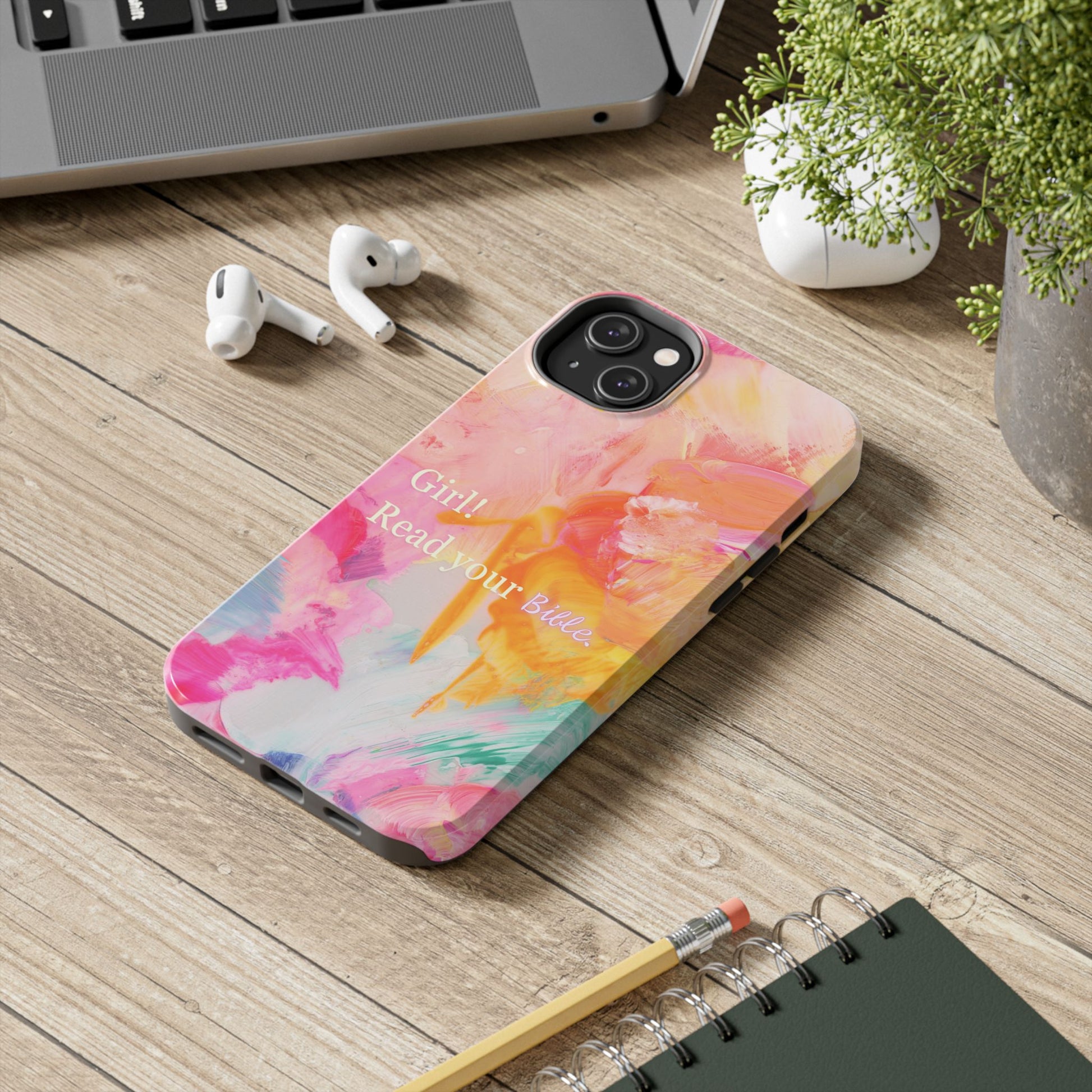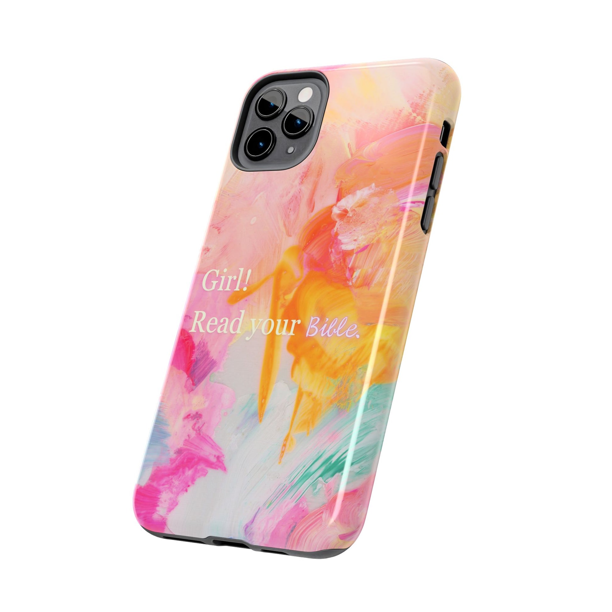 Keep your faith close at hand and your phone protected with our "Girl! Read Your Bible" phone case. More than just a pretty accessory, this case is a daily reminder to dive into God's Word, encouraging you to seek wisdom and find comfort in Scripture no matter where you are.